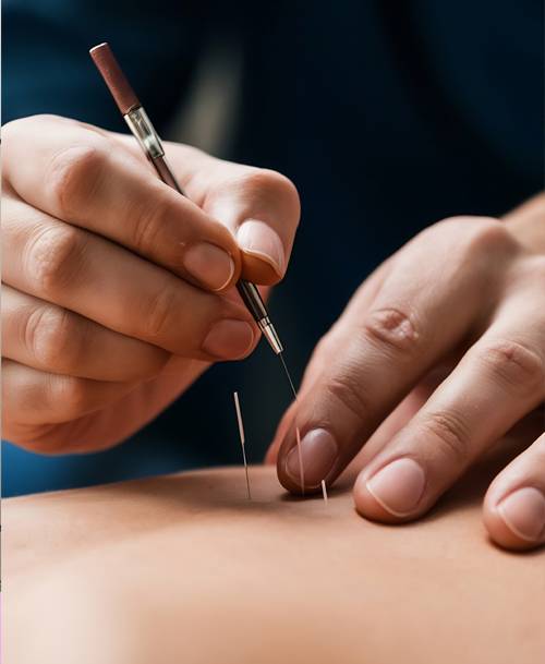 Acupuncture therapy stimulates specific points to relieve pain, balance energy, and promote healing.